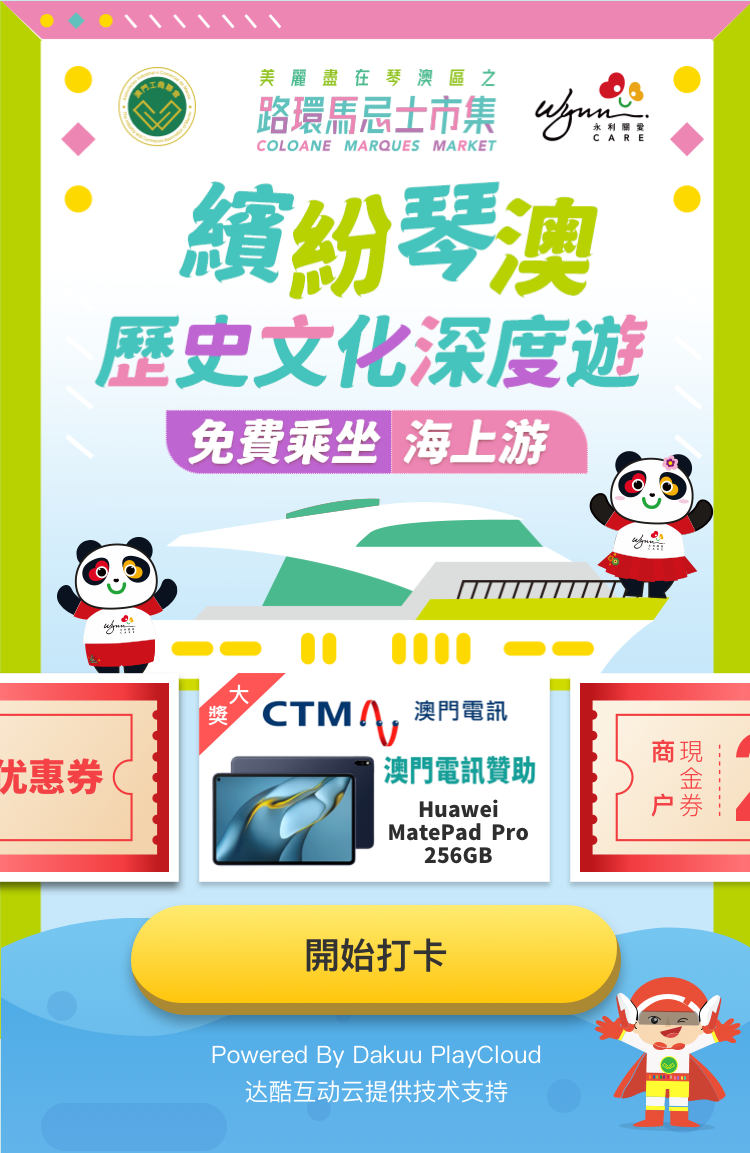 基于以上营销命题的思考,达酷互动定制开发了“2022繽紛琴澳歷史文化深度遊”微信互动,以“地图导赏打卡+完成任务抽奖”的核心玩法,吸引了将近16,000的浏览人次,总打卡次数将近6,400次,共派发出将近3,000张电子现金券,成效显著。