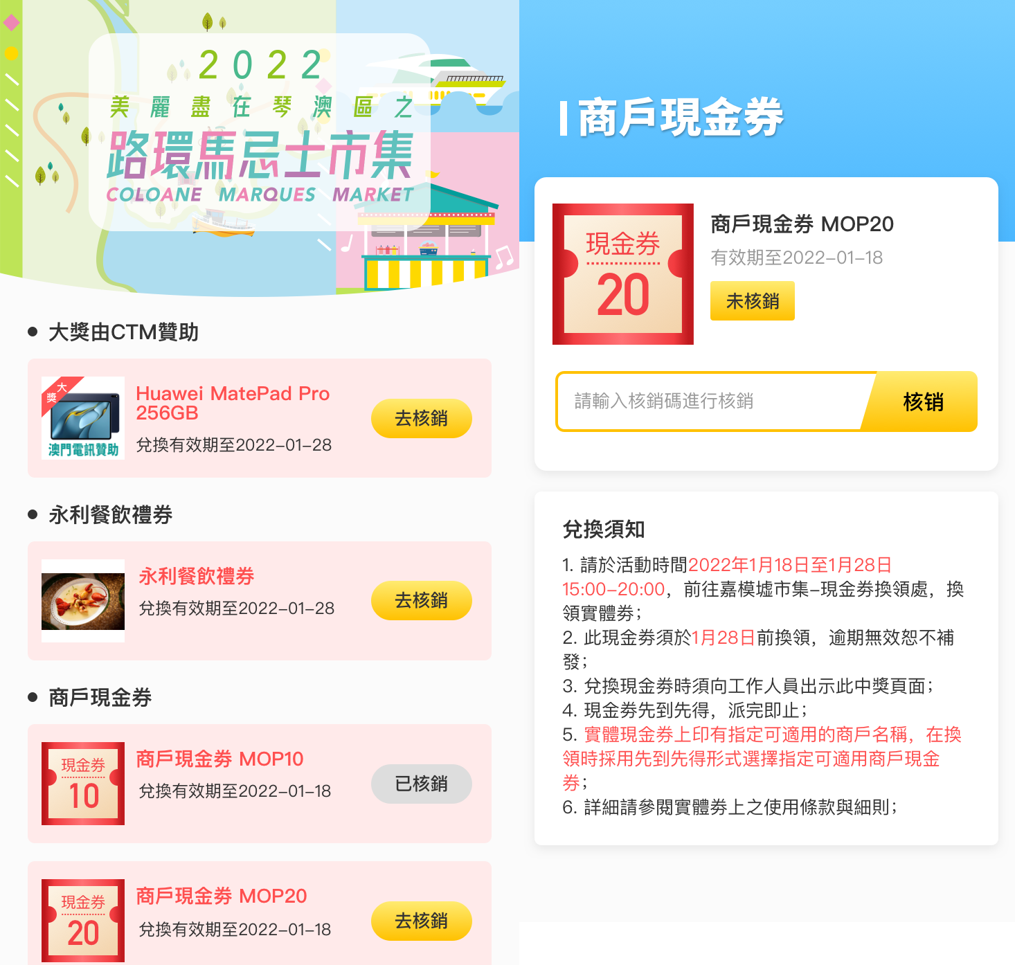 活动通过打卡和抽奖派发$10-500元不等的现金券,并通过达酷互动云的核销体系打通线下,用户获得现金券后可前往市集核销兑换并进行消费抵扣。本次活动核销率高达37%,通过现金券的直接让利拉动用户的线下消费意愿,为商户带来真金白银的消费回暖。