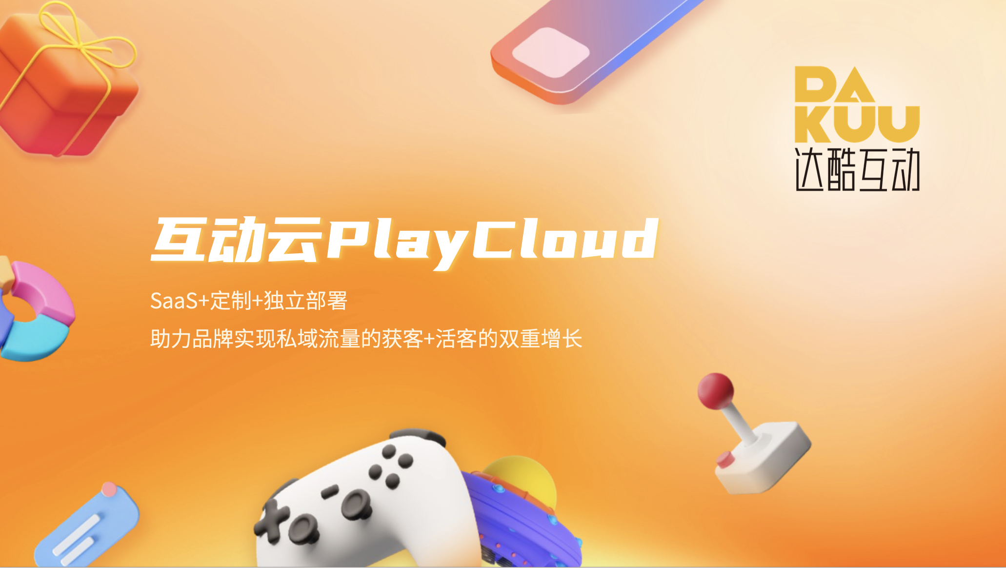 达酷互动科技基于云计算、智能算法及大数据技术,自主研发一站式互动营销SaaS系统“互动云PlayCloud”,助力品牌实现私域流量的获客+活客的双重增长。